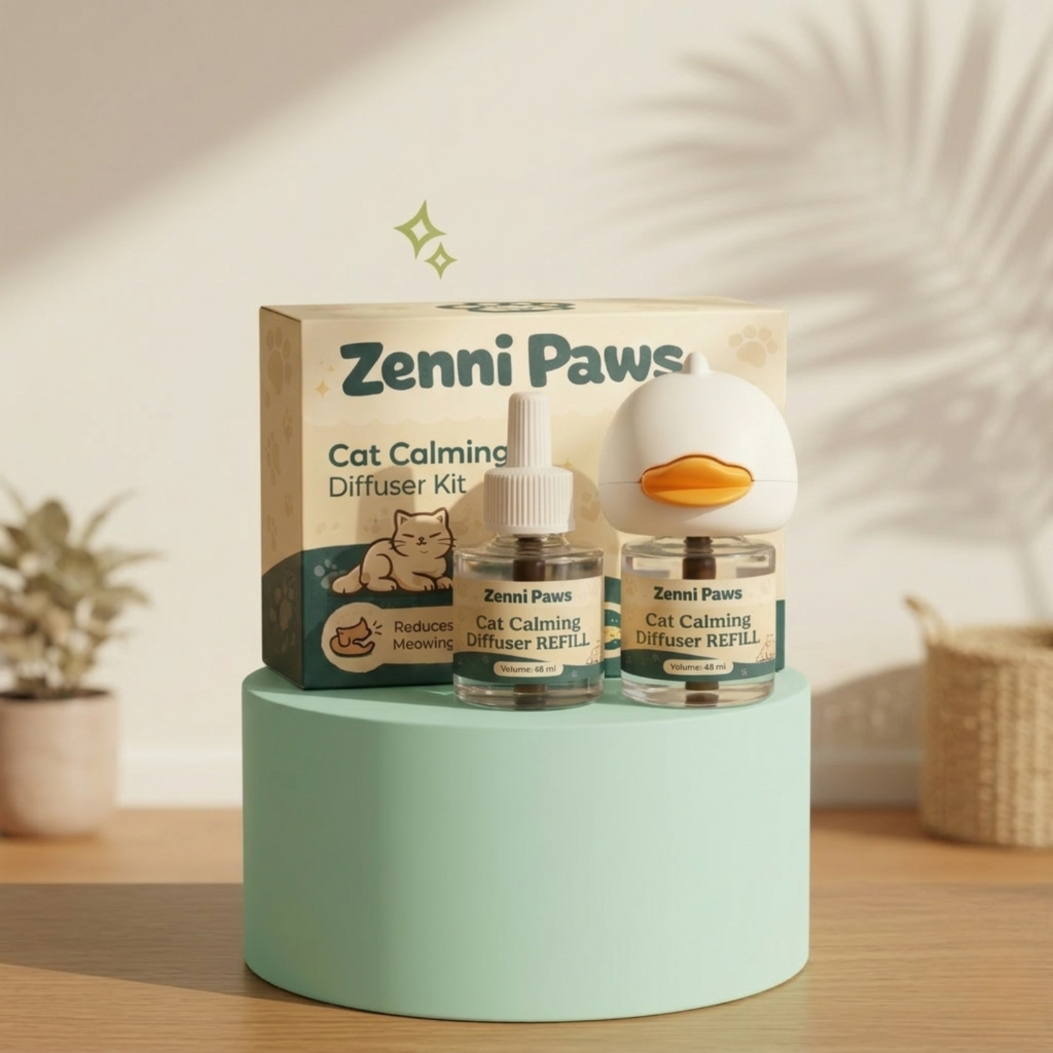 Having Zenni Paws diffusers around your home keeps your cat calm automatically, ensuring a peaceful, fresh environment.